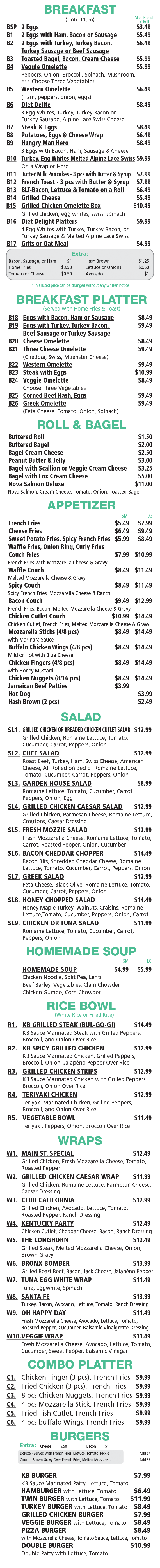 Full Menu